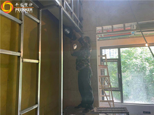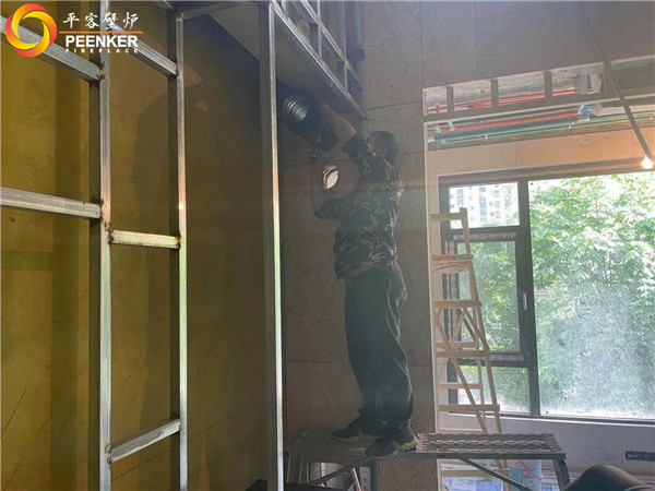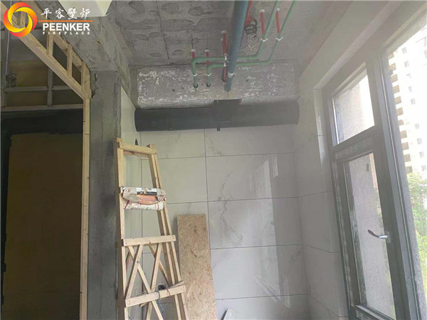 項目介紹:室內煙囪橫向過長,戶外使用丹麥Exodraft壁爐排煙風機解決抽力問題,由平客壁爐項目經理現場指導安裝。