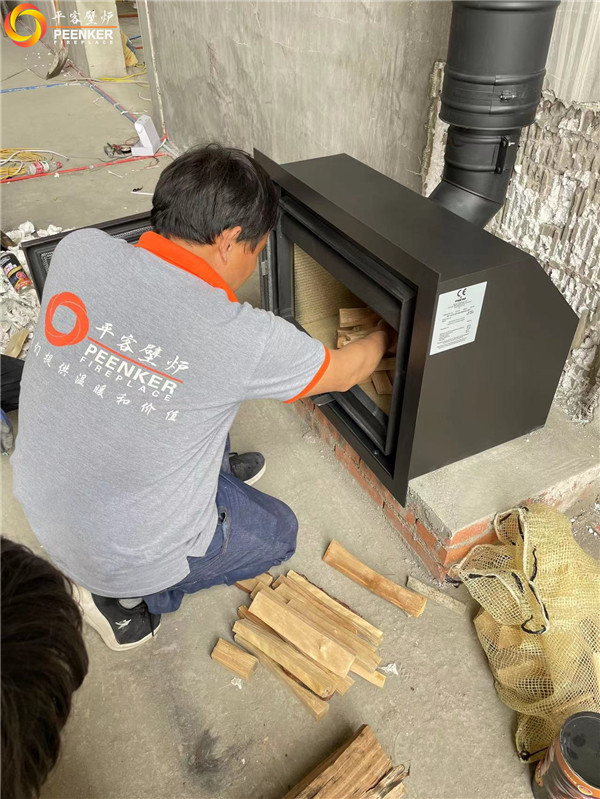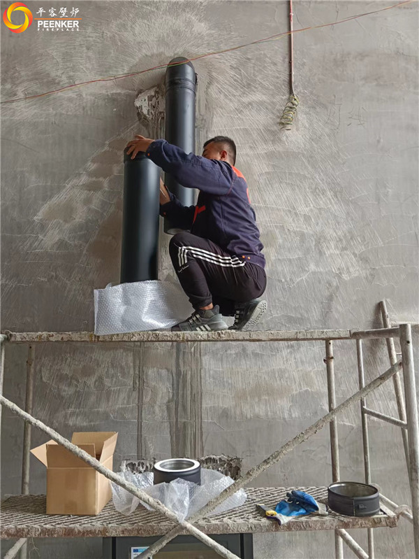 項目介紹:項目為業主自建別墅,壁爐安裝在客廳位置,煙囪橫向位移過長,無法安裝橫向位移不超過垂直高度20%的安裝要求,所以戶外選擇使用丹麥Exodraft壁爐風機代替戶外雙層煙囪,解決壁爐抽力問題!平客壁爐項目部帶隊上門安裝!