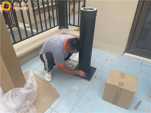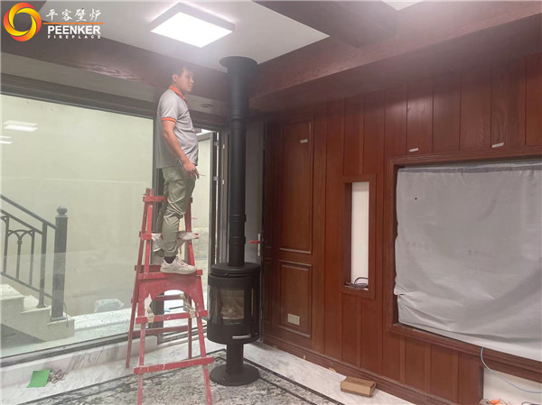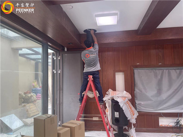 項目介紹:這是南京加州城別墅業主家的第二臺壁爐,2021年安裝了法國totem的嵌入式壁爐,本次為業主安裝的壁爐是丹麥morso獨立式火爐7648,因為安裝位置無法出側墻安裝,所以選擇出頂到露臺的安裝形式,后期業主做好屋面防水,平客壁爐帶隊上門安裝!