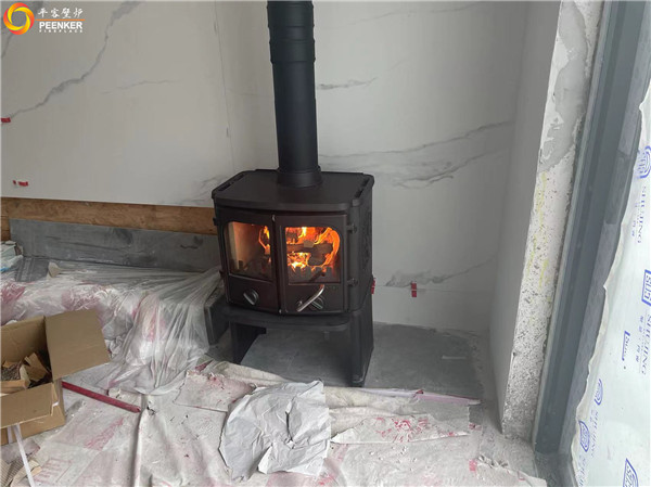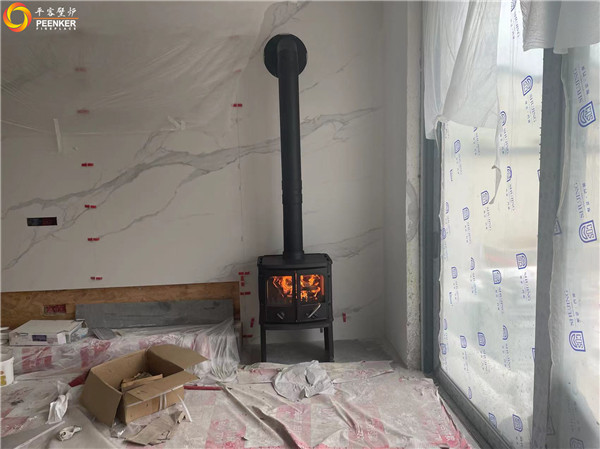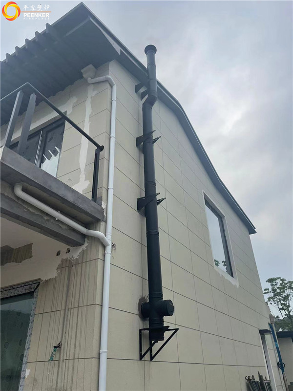 項目介紹:壁爐靠墻,煙囪穿側墻出,平客壁爐項目部帶隊上門安裝!