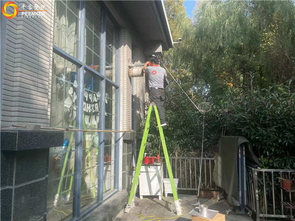 項目介紹:業主別墅已經入住,所以只能選擇獨立式火爐進行安裝,戶外使用丹麥Exodraft壁爐風機代替煙囪,解決抽力問題;平客壁爐帶隊上門安裝。