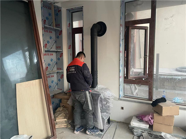 項目介紹:該項目中,丹麥鑄鐵火爐morso3640安裝在一樓位置,煙囪出側墻安裝。平客壁爐帶隊上門安裝。