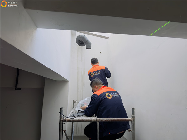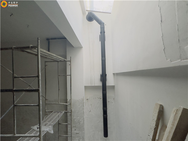 項目情況:該項目是聯排別墅邊戶,業主選購來自丹麥Aduro A14獨立式火爐安裝于地下室天井位置,煙囪在天井往上加高從側墻出到戶外,再豎直加高到樓頂位置。今天將壁爐煙囪安裝到位,壁爐放置現場,由平客壁爐項目部帶隊上門安裝安裝。
