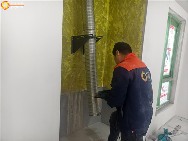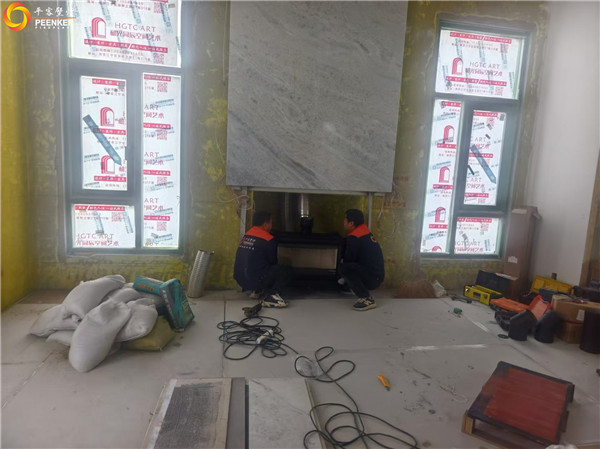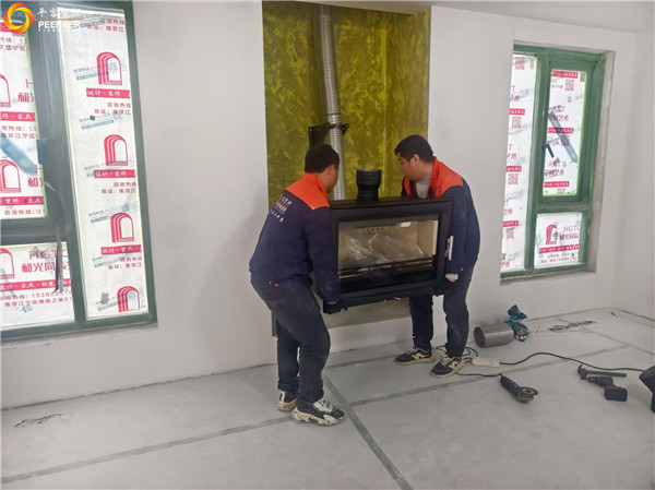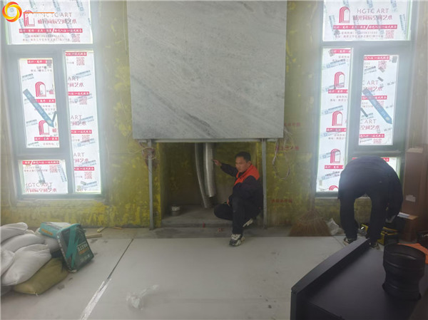 項目情況:該項目位于鎮江紫金7號別墅,自帶磚石爐膛和煙道,業主選擇英國fireline嵌入式真火壁爐,自吸式爐門,可燒煤炭和燃木。壁爐安裝在一樓和二樓,煙囪共用一個磚石煙道。由平客壁爐項目部帶隊上門安裝。