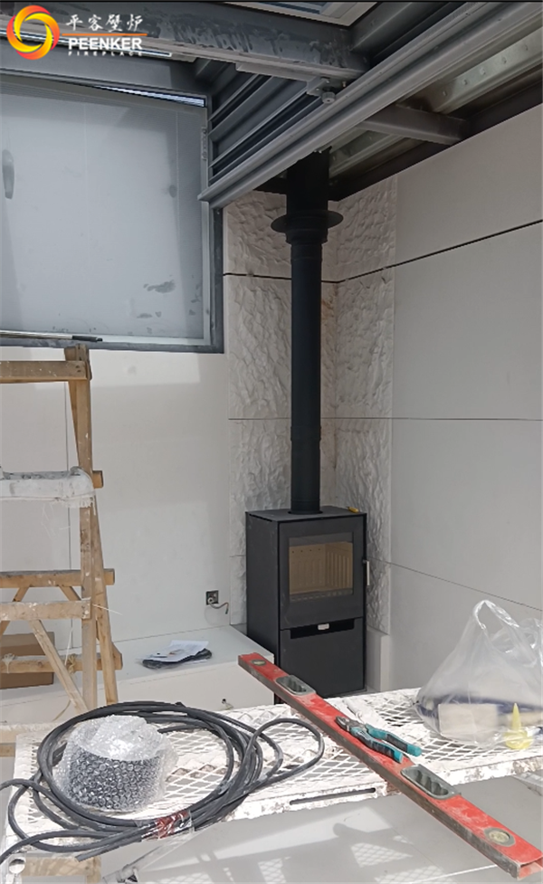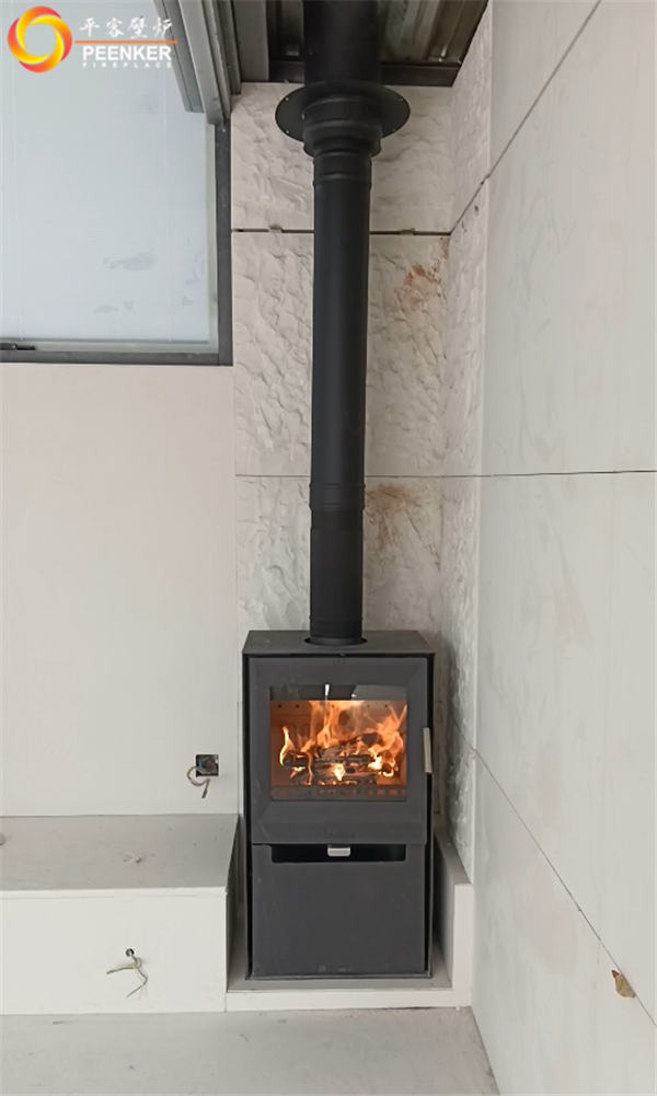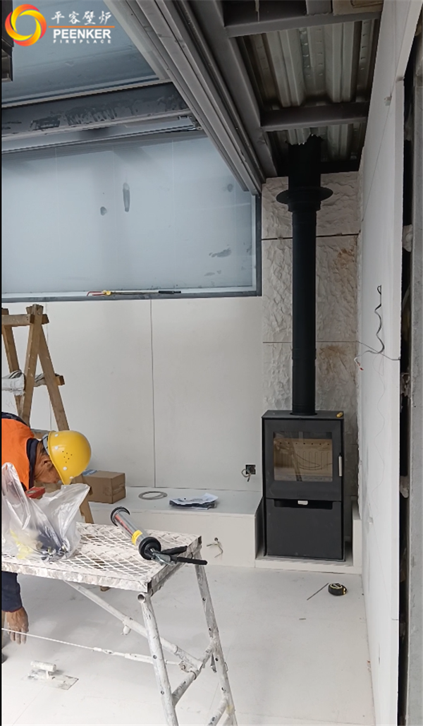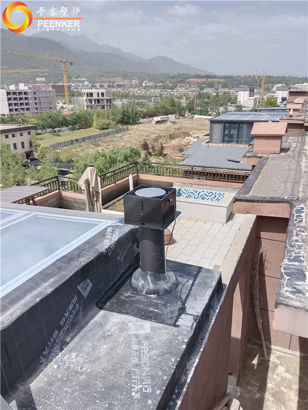 項目情況:項目位于陜西寶雞市眉縣湯峪鎮太白麒麟府,煙囪被安裝在頂樓,因煙囪垂直高度無法達到5米要求,戶外使用壁爐風機解決抽力問題。由平客壁爐項目部上門指導安裝。