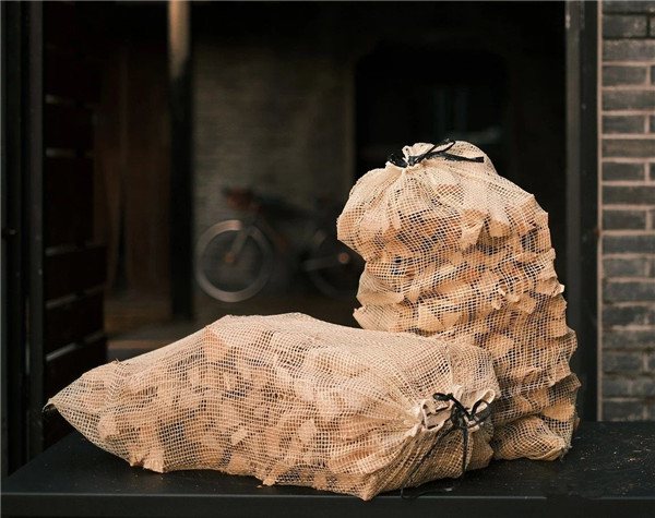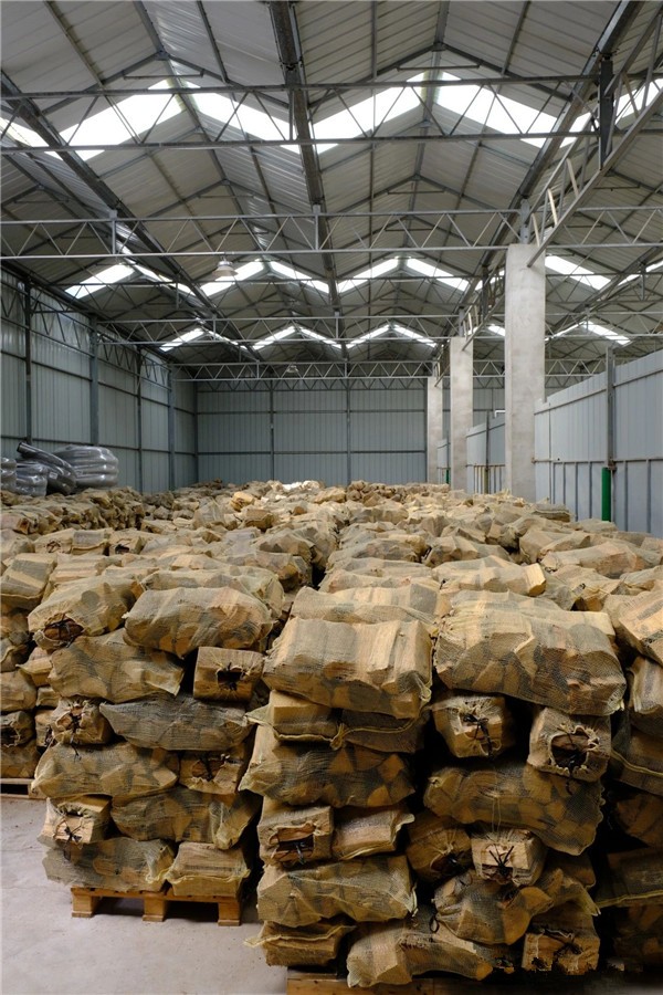 燃木長度為25±1cm,一致性好,網孔袋包裝(有效容量45L),櫟木槐木混裝,22袋為1立方米,品質與我們以前從東歐進口的燃木別無二致。