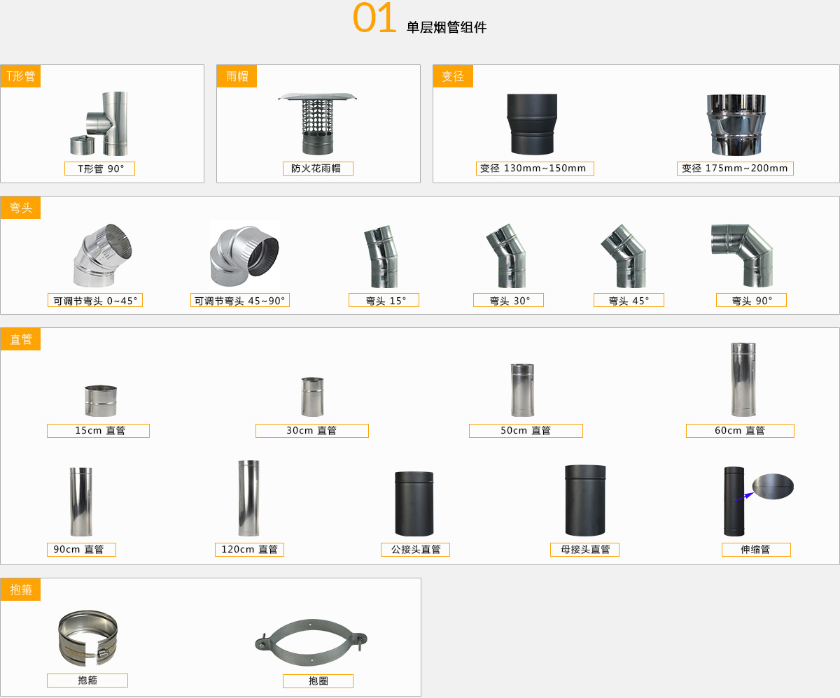 國內專業的真火壁爐煙囪組件庫 種類多達206種/長期儲備上千套配件 足以從容應對各種安裝挑戰 煙囪組件全部符合歐盟BS EN 1856-1:2009安全認證 關鍵組件采用316不銹鋼制作 確保超長壽命