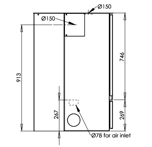 為了方便安裝戶外進風管,Aduro 12 配備了三個方向的進風接口:左側、右側、下方,對于轉角火爐來說這種設計非常貼心,用戶可以自由選擇從哪堵墻(或者地面)開孔引入戶外空氣。下圖展示了這種靈活性帶來的好處。