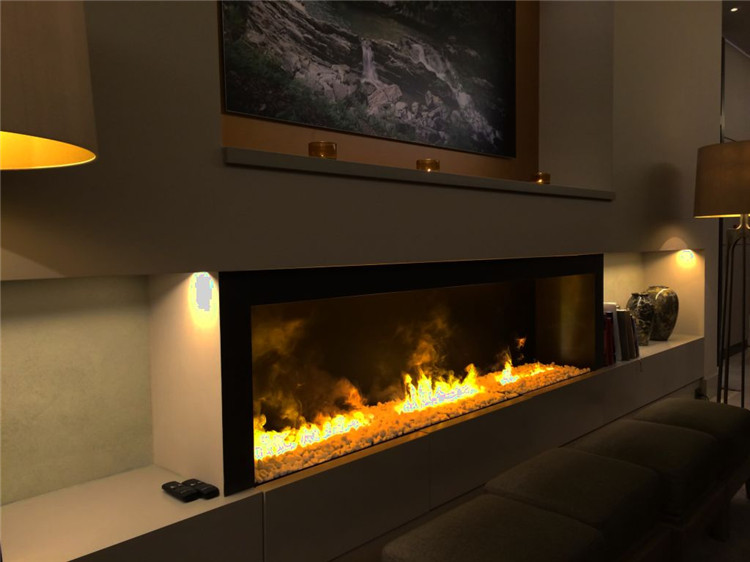 發(fā)現(xiàn)沒,霧化壁爐的安裝全部采用的是下沉式的安裝,霧化壁爐的原理是利用超聲波霧化器將水霧化,通過風(fēng)機或者空氣自然流動將霧氣從壁爐口中噴出,配合燈光,模擬火焰的效果!所以霧化壁爐的安裝全部是下沉式,其面上除了模擬火焰,沒有其他的東西!